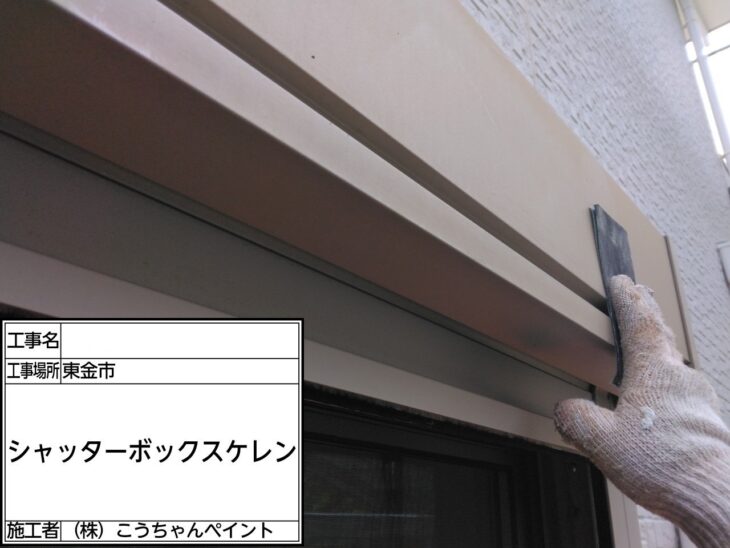 シャッターボックスケレン施工中ケレン作業は、汚れやサビを落とす重要な工程です!