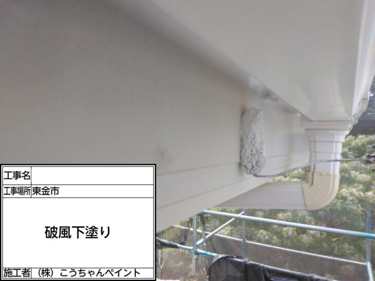 破風下塗り施工完了次回の中塗り・上塗りをする上で、接着力を強め、耐久性に優れた外壁塗膜を作り出すのが今回の下塗り作業となります!