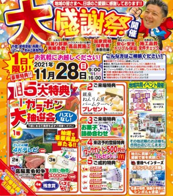 を開催させて頂きます!当日は皆さんに楽しんで頂きたい社長の熱い想いと日頃のご愛顧に感謝を込めて・・ハズレ無し!