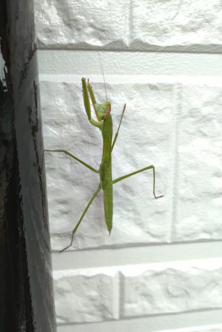 職人さんたちは塗ったあとに足跡をつけないように大変な注意をはらっている…そんな社長こうちゃんの言葉を思い出します。カマキリの足跡は付いてないので大丈夫。