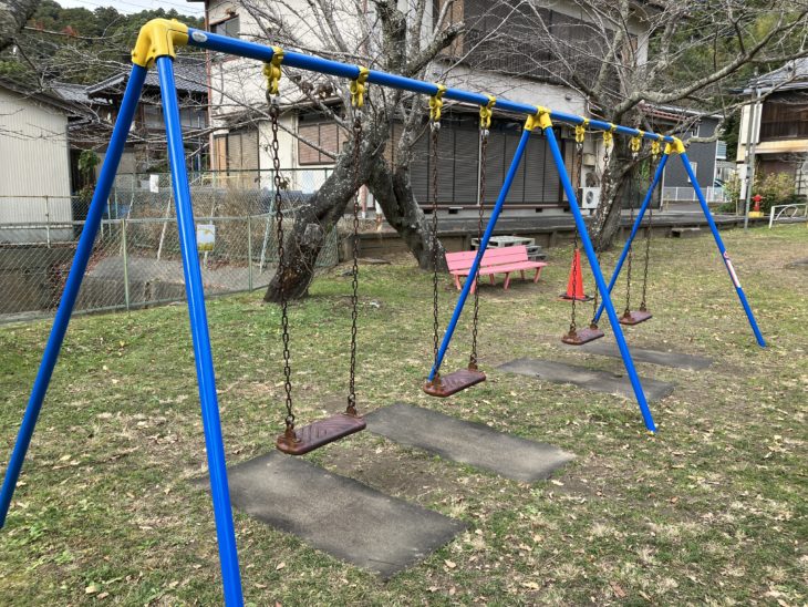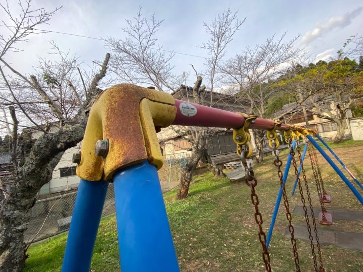 ブランコは黄色と青で塗装しました。