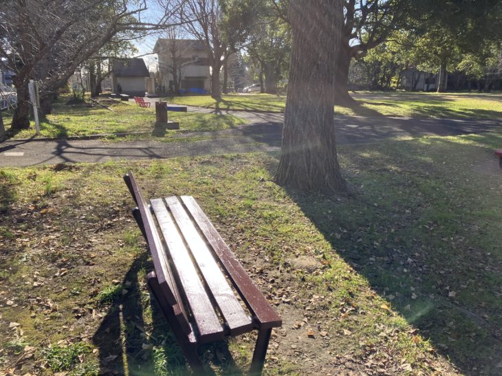 千葉県東金市 八鶴湖にある谷(やつ)公園のベンチ