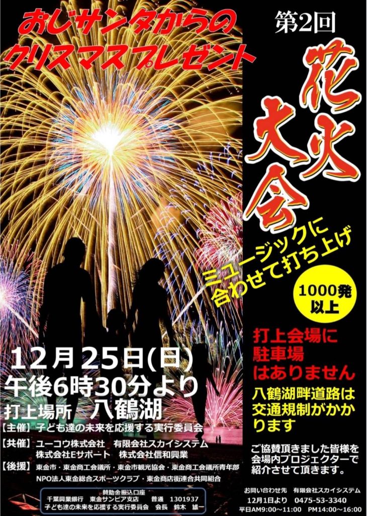 12/25 クリスマスには、八鶴湖で花火大会も開催されます。
