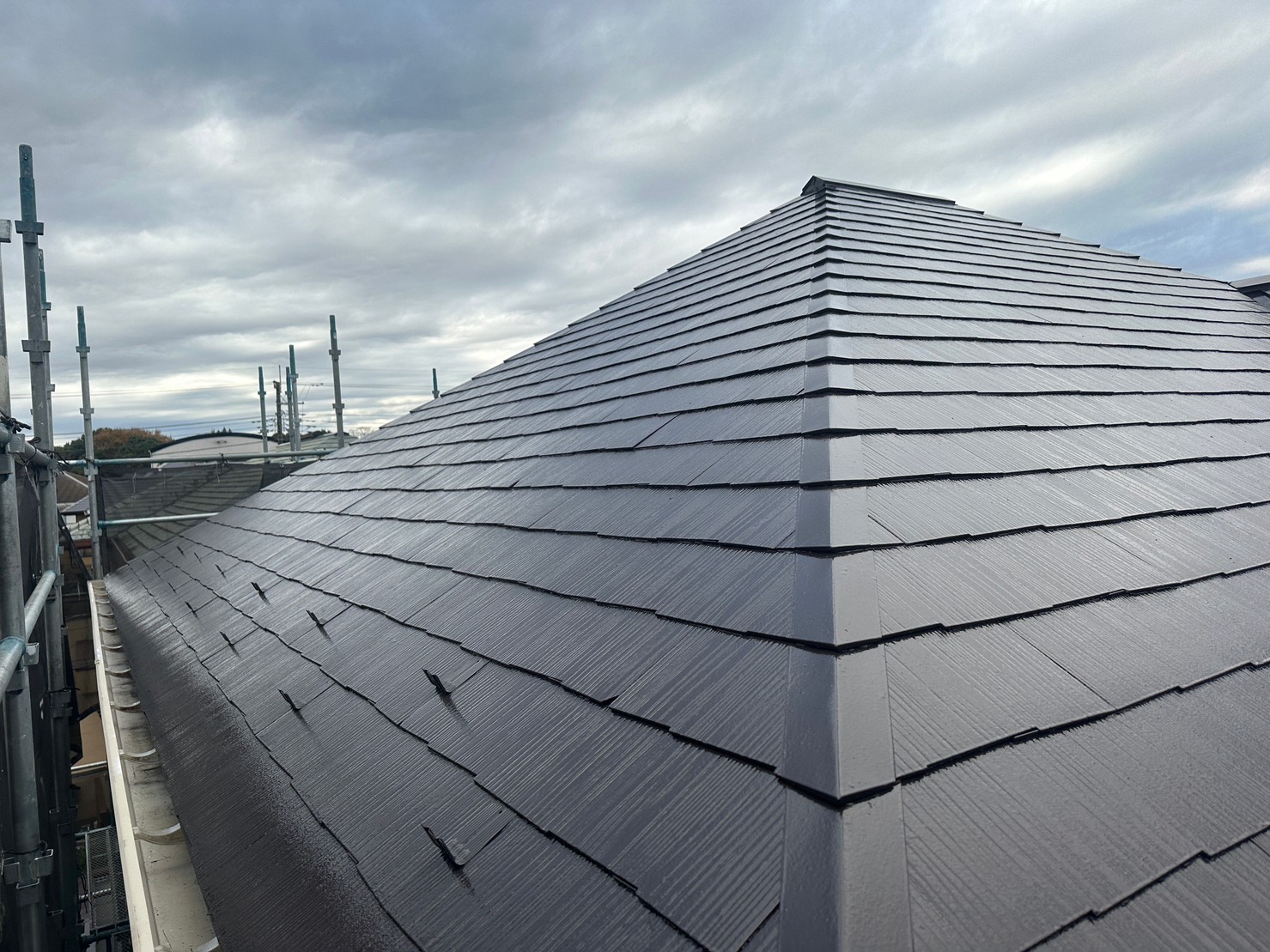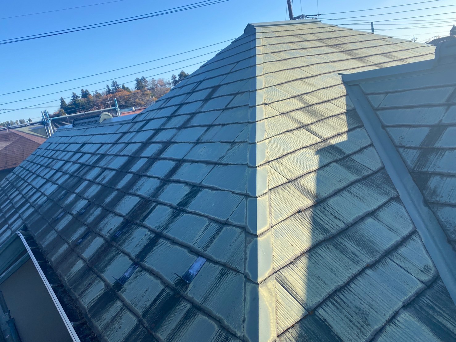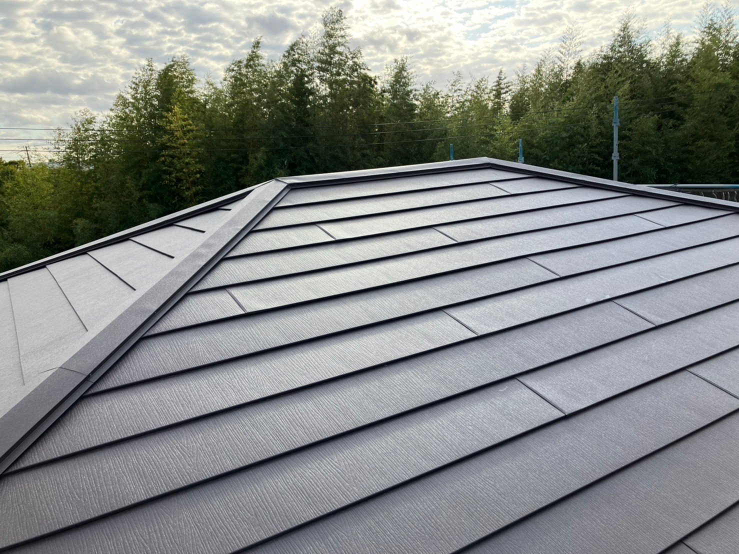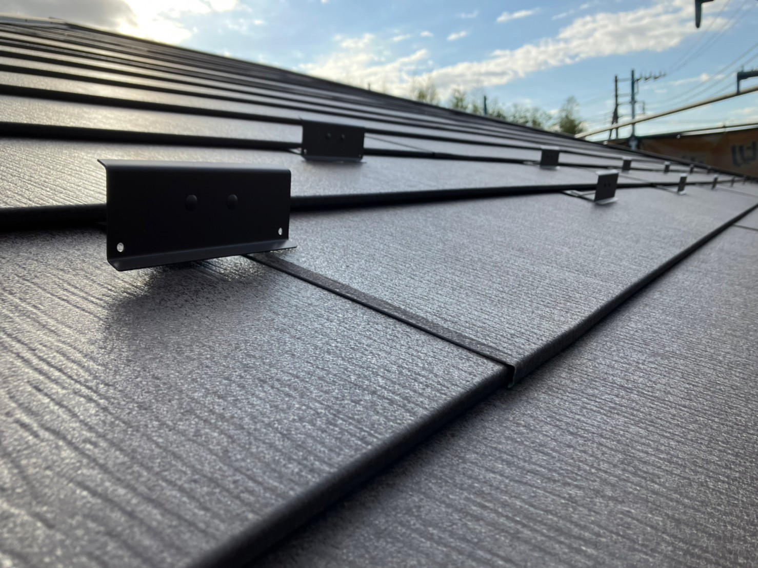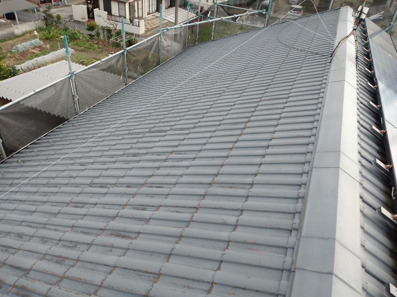施工後の屋根の様子です。ソーラーパネル側の屋根です。
