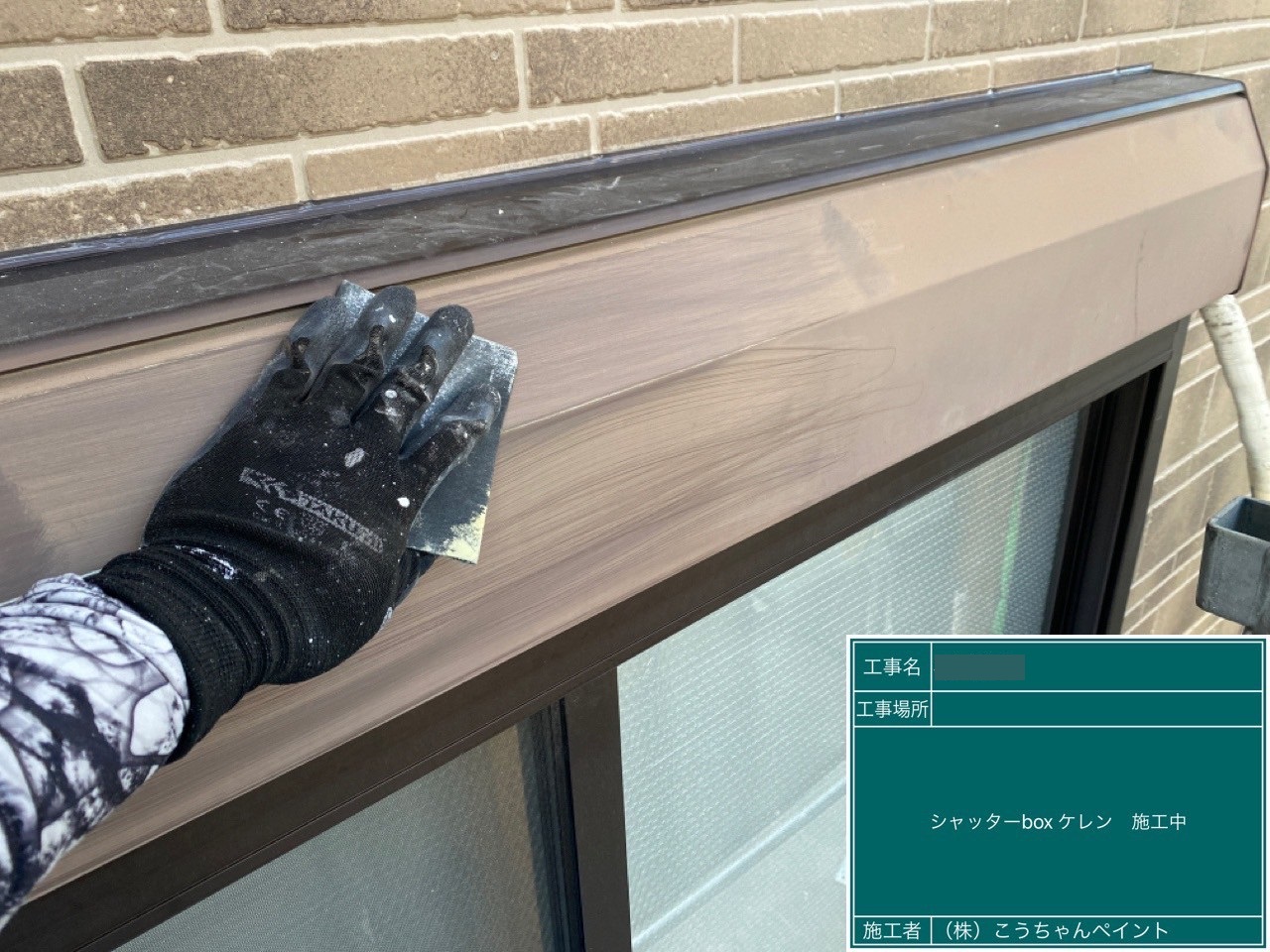 下地の処理から幾つもの工程を丁寧に行い、外壁塗装と同じようにシャッターボックスなどの付帯部も最後には上塗りで仕上げていきます。塗料の機能が十分に付与されるように全体を丁寧に塗装していきます。