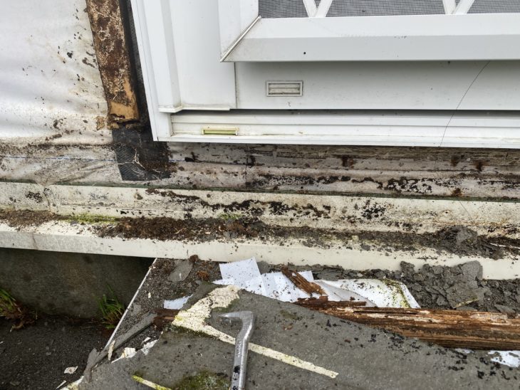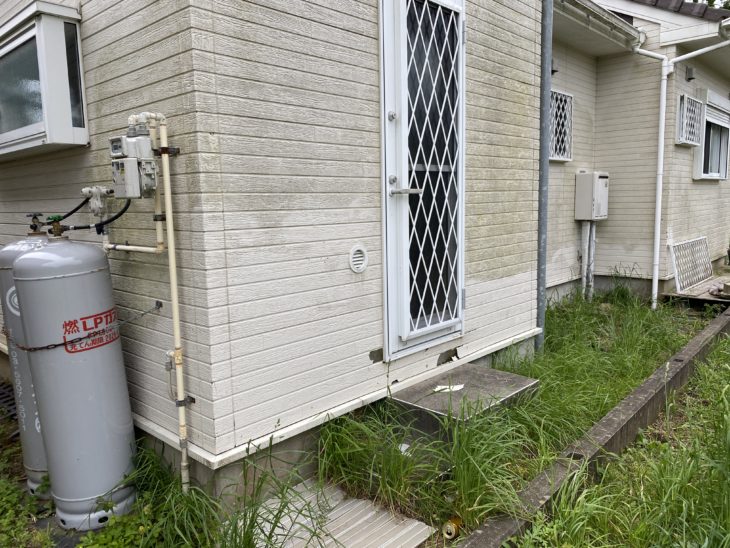 また、日の当たりにくい裏側の勝手口では、湿気のせいか足元の外壁が割れ落ち、腐食も進んでいるように見えていました。
