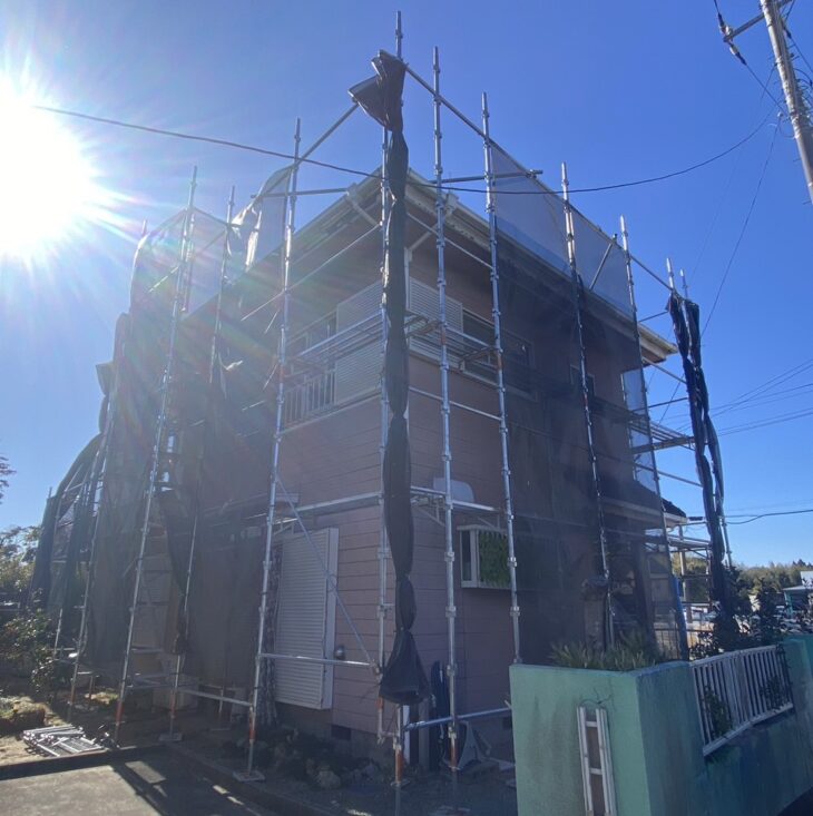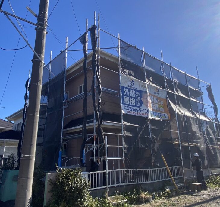 東金市O様邸 本日着工:足場組立が無事に完了いたしました!屋根・外壁塗装を行って参ります。
