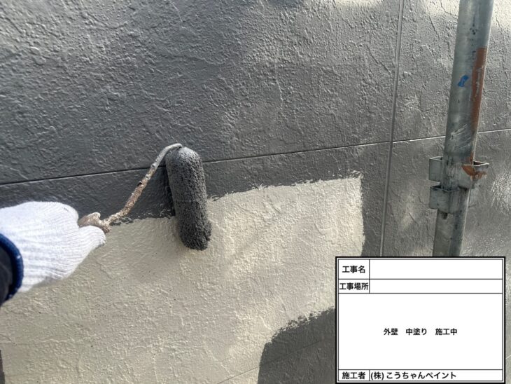 外壁中塗り施工中