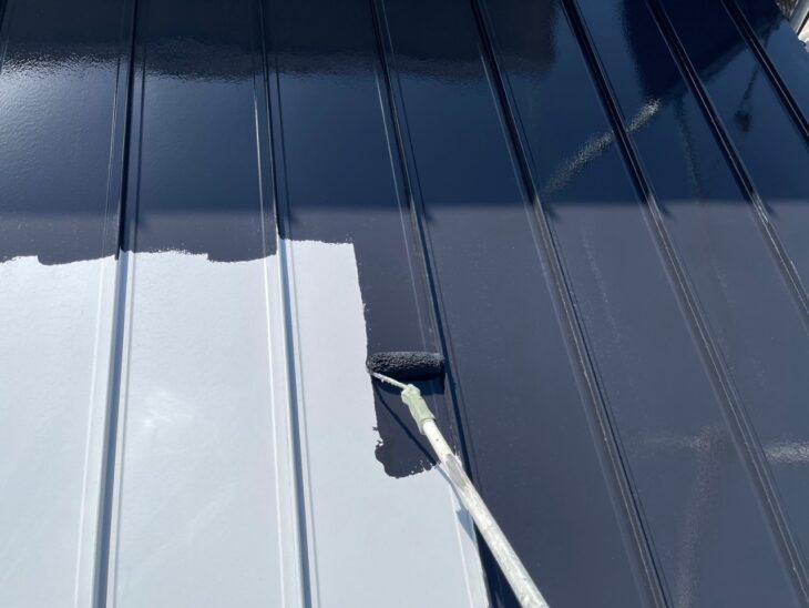 屋根 上塗り施工中