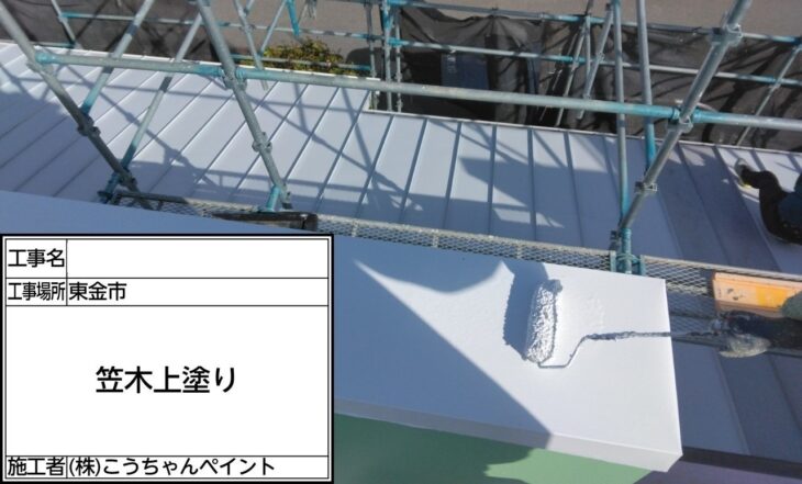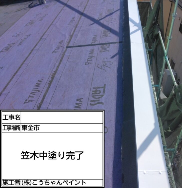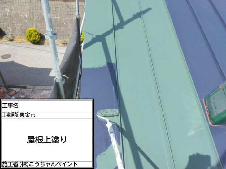 屋根 中塗り施工中