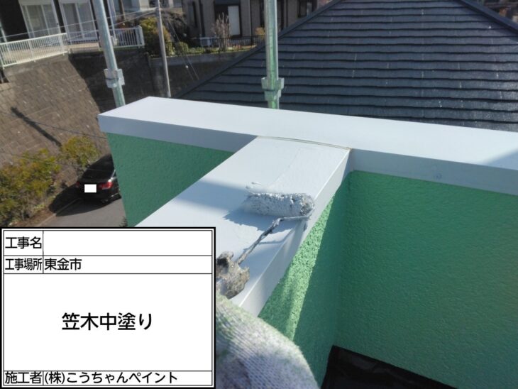 笠木 上塗り施工中