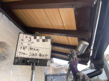・軒天クリアー1回目塗装中