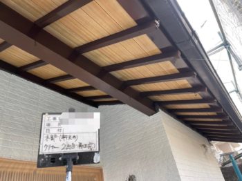 軒天の木目を生かし!クリアー塗装を行いました。