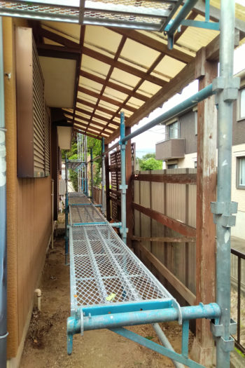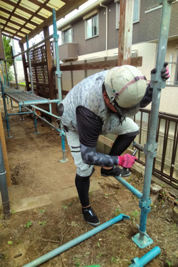 さて、本日は、足場を組み立てています!