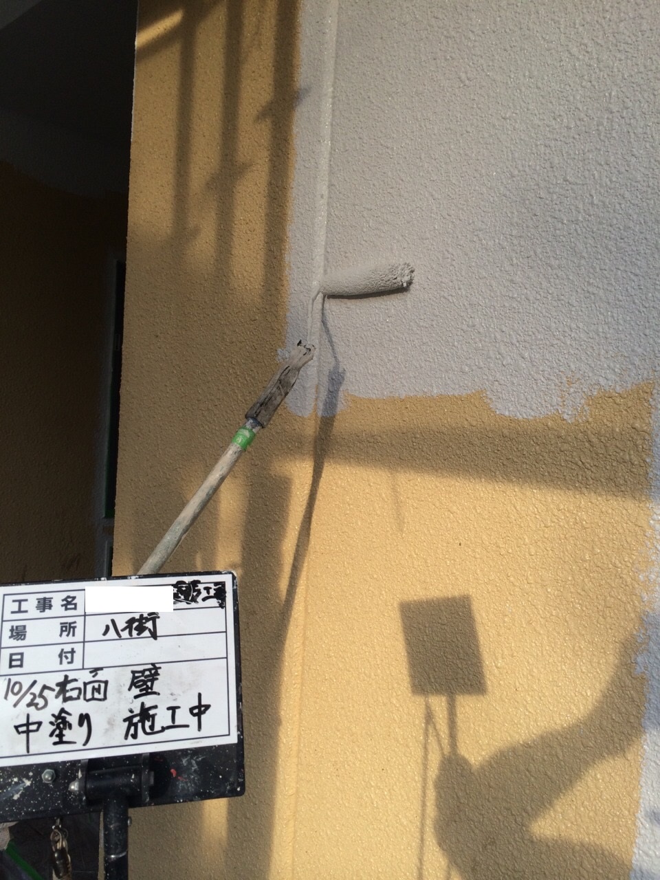 中塗り施工中