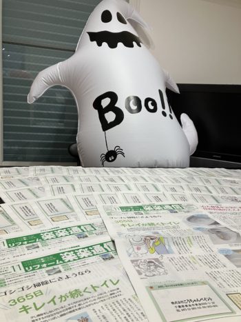 こんにちは。さて本日は、10月30日の大感謝イベントで活躍が期待されるゴーストの視線を感じながらも、社名押印に集中!