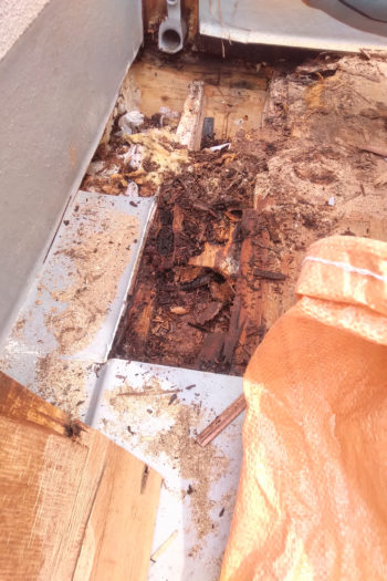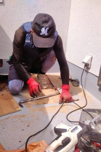 このあと、腐った床板の張り替えと防水塗装を行います。