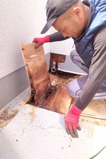 【本日の現場情報】ベランダの床が腐ってぶかぶかに! 緊急補修中です!