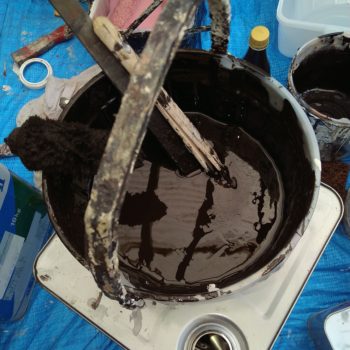 早朝に、まず 錆止めの塗装(下の写真)を行いました。光沢のない黒っぽい塗装です。