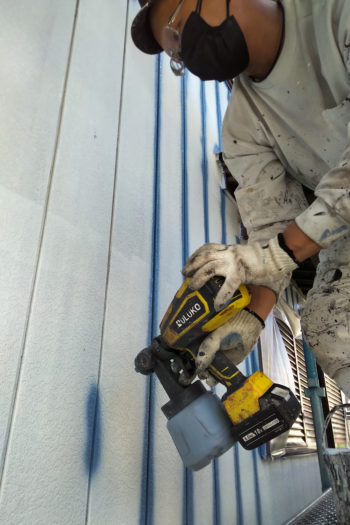 ただ、スプレーも塗料が飛散しやすいことに気をつけなければならず、その点については技術力と注意力が必要。上の塗装職人も作業中は息を殺してやっておりました。