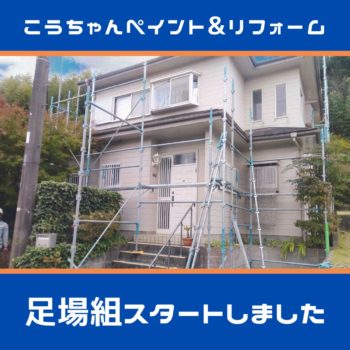 本日は2階建ての一軒家が工事初日。外壁と屋根の塗装のご注文をいただいております。初日ですのでいつもどおり、足場組み立てをしています。