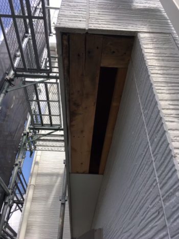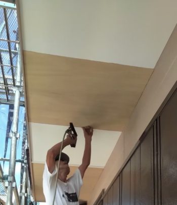 ベランダ下の軒天の隅のあたりに違和感があればご連絡ください。雨漏りによる内部木材の腐食は雨が降れば雨水が徐々に浸透していき進んでいきます。早目の手当てで最小限に抑えることができます。