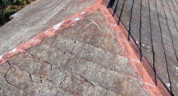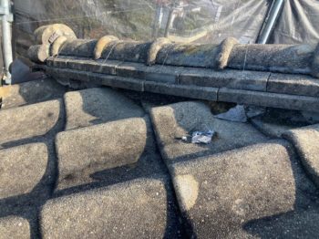 スレート屋根材のひび割れや浮きやズレ、漆喰の傷み、瓦のずれ、棟板金の浮きなどが主な原因です。
