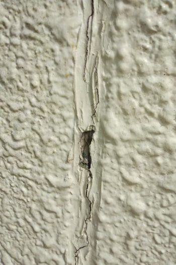 そして、外壁の水が浸入する個所としてかなり多いのが、窓などのサッシ枠と防水シートとの隙間です。雨水などは外壁の表面を流れおちますが、経年劣化によるひび割れや変形したコーキングのわずかな隙間から雨水が浸入してくる場合があります。