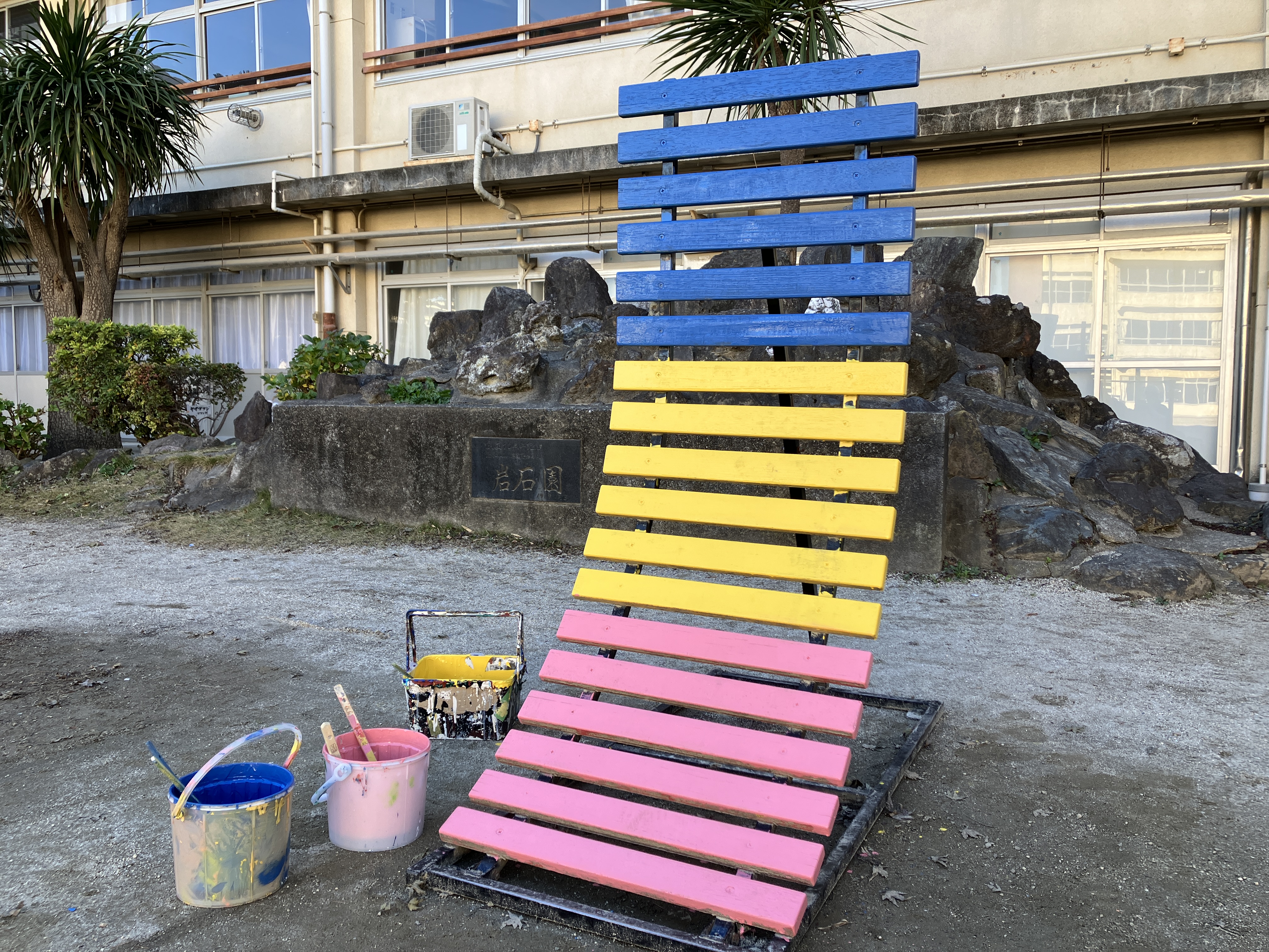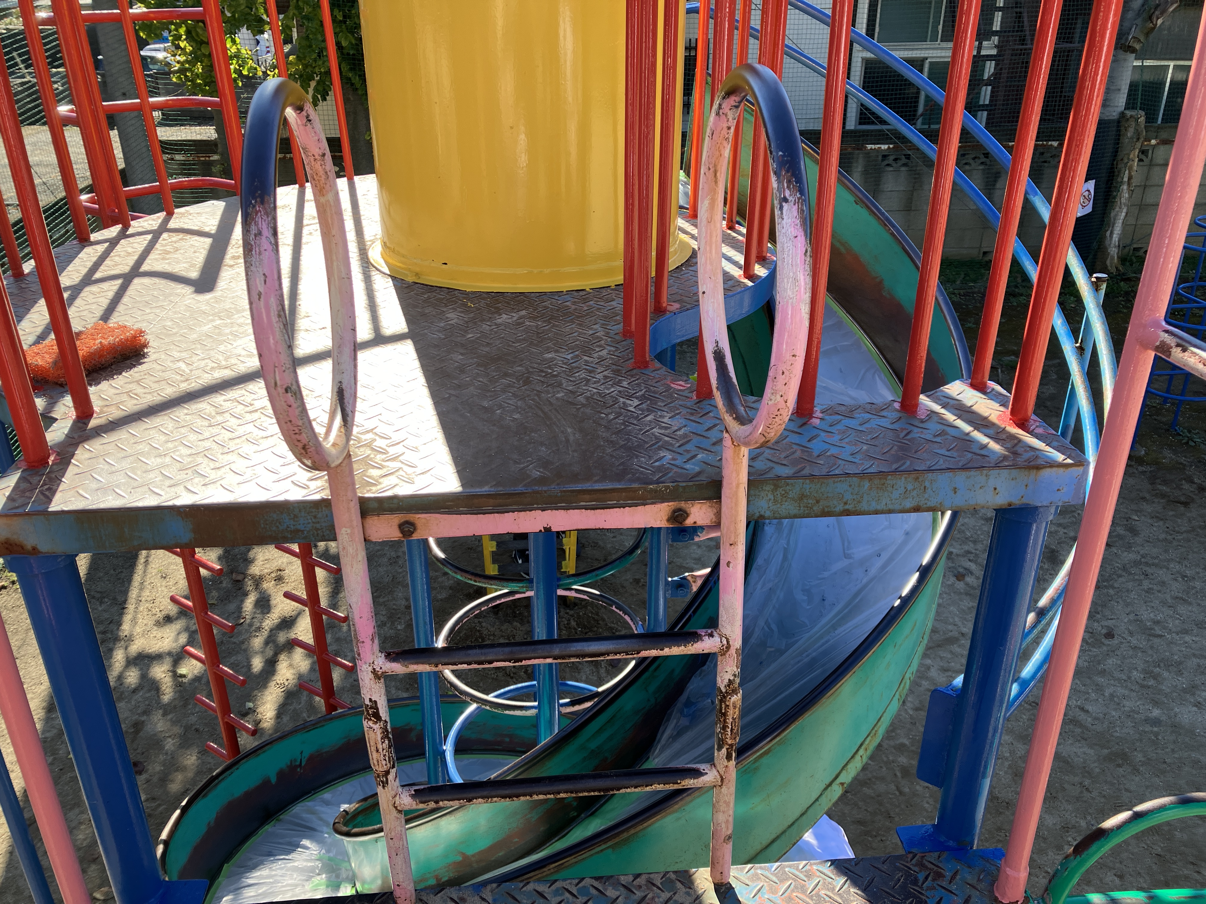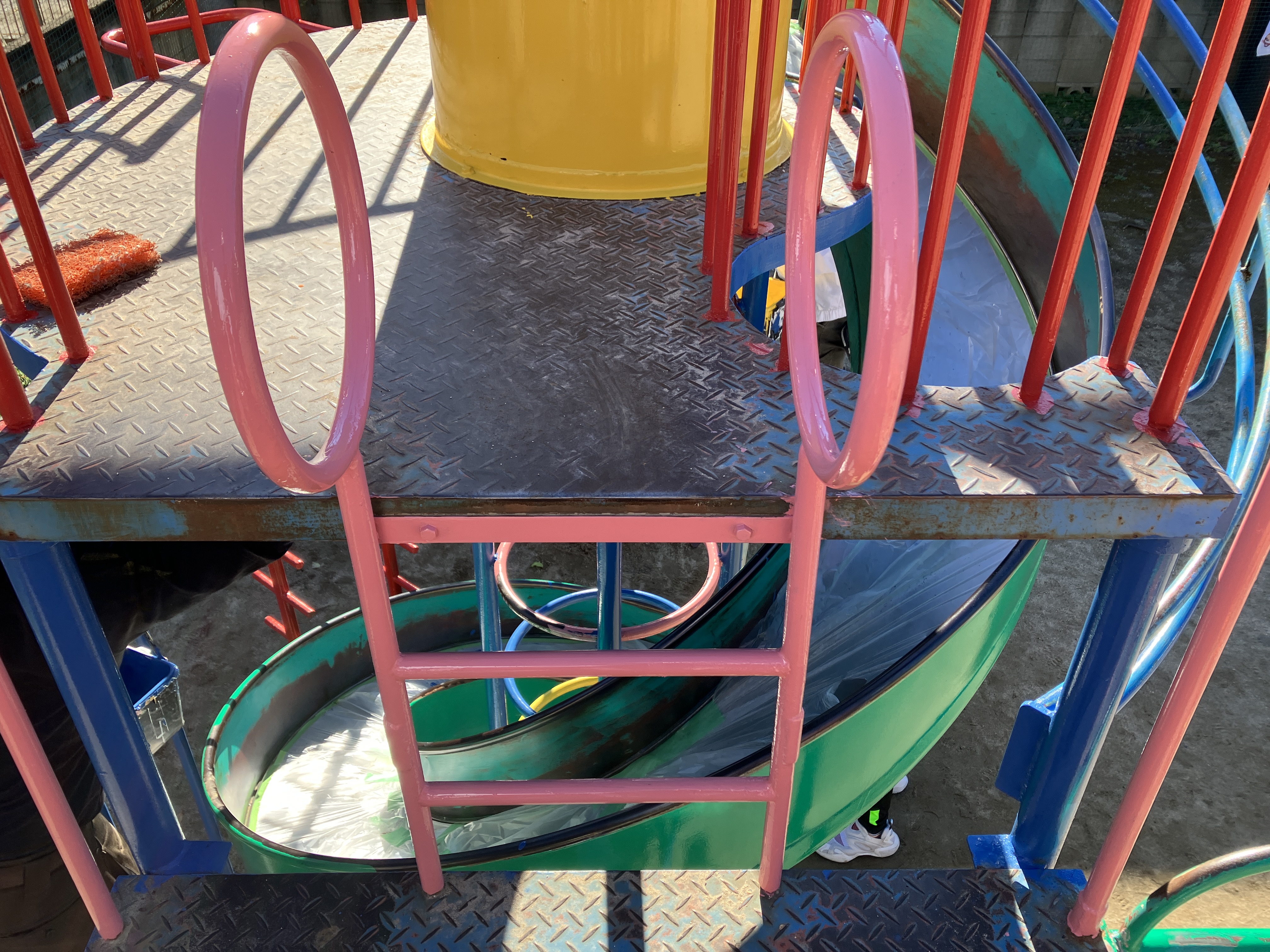 お待たせしました。「遊具の塗装ぴかぴか大作戦」ビフォーアフターのコーナーです。塗装大作戦からのピカピカ遊具をご覧いただきたいと思います。