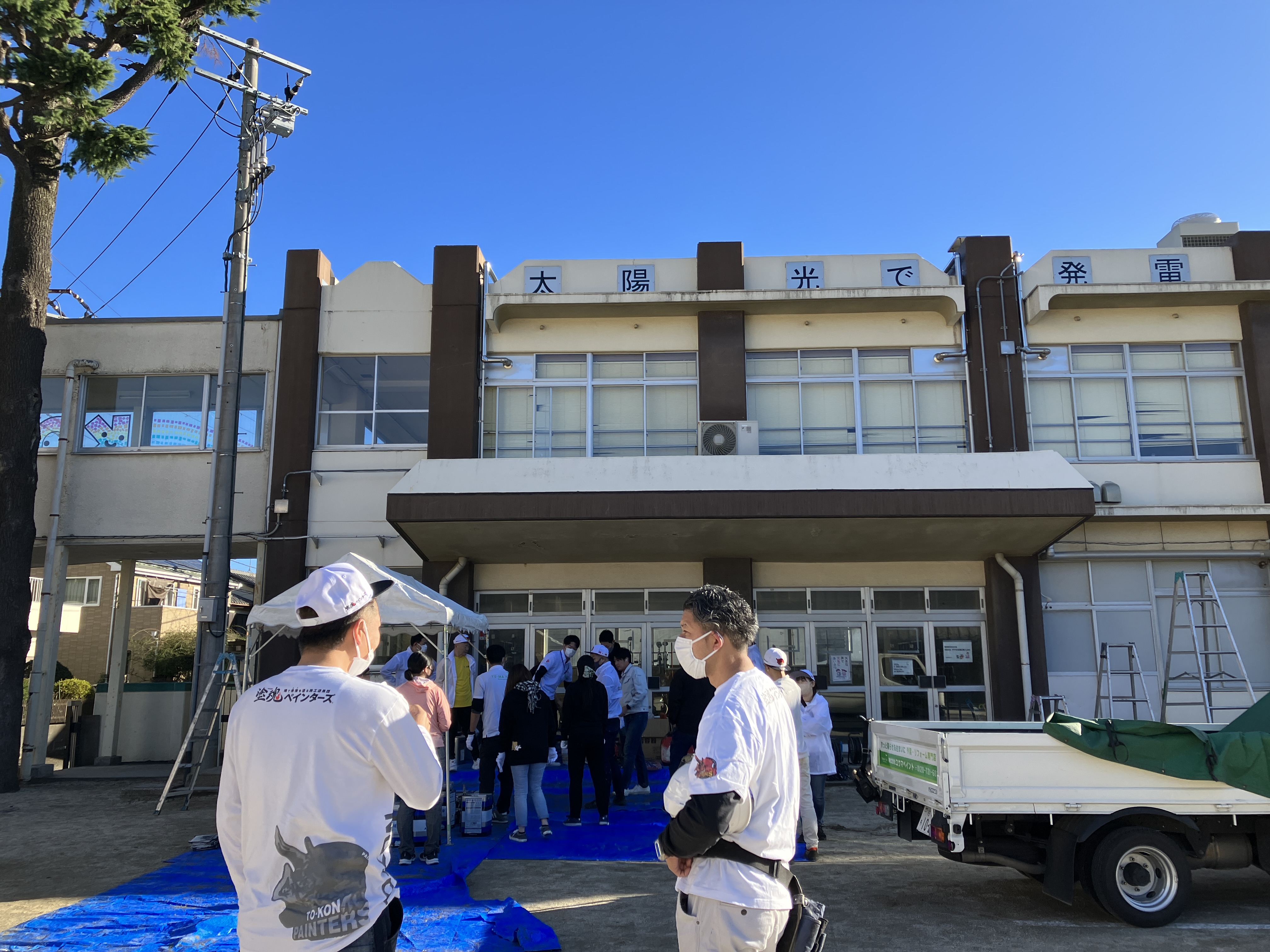 東金市の「こうちゃんペイント」が加盟している塗装界の熱き有志たち塗魂ペインターズのボランティア活動が松戸市の小学校で開催され、