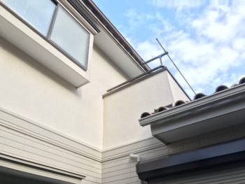 こちらのおうち、1階部分は数年前に塗装済みということで、弊社は今回、2階より上を塗っていきます。