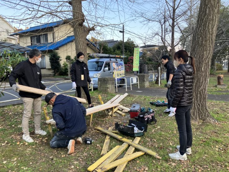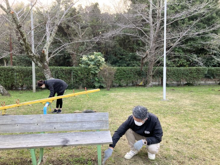 谷公園がイベントの会場にもなるため有志の方からの要望もあり、クリスマスの花火大会を前にベンチや遊具の塗装をすることになりました。