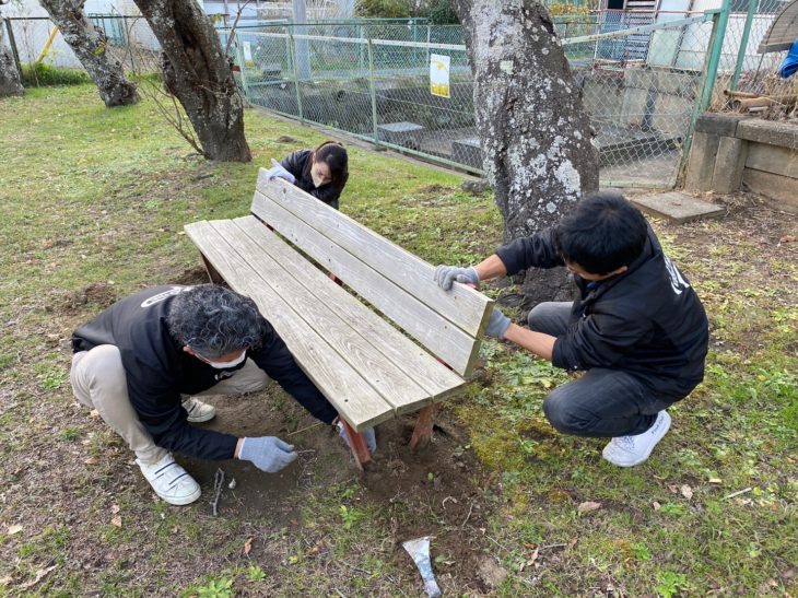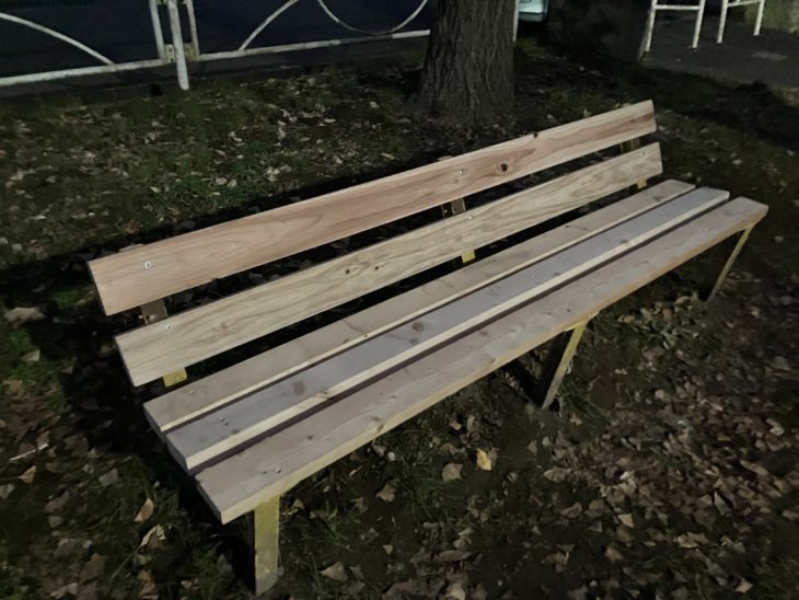 完成したベンチです。これからは安心して座っていただけます。良きひと時をお過ごしいただけますように。