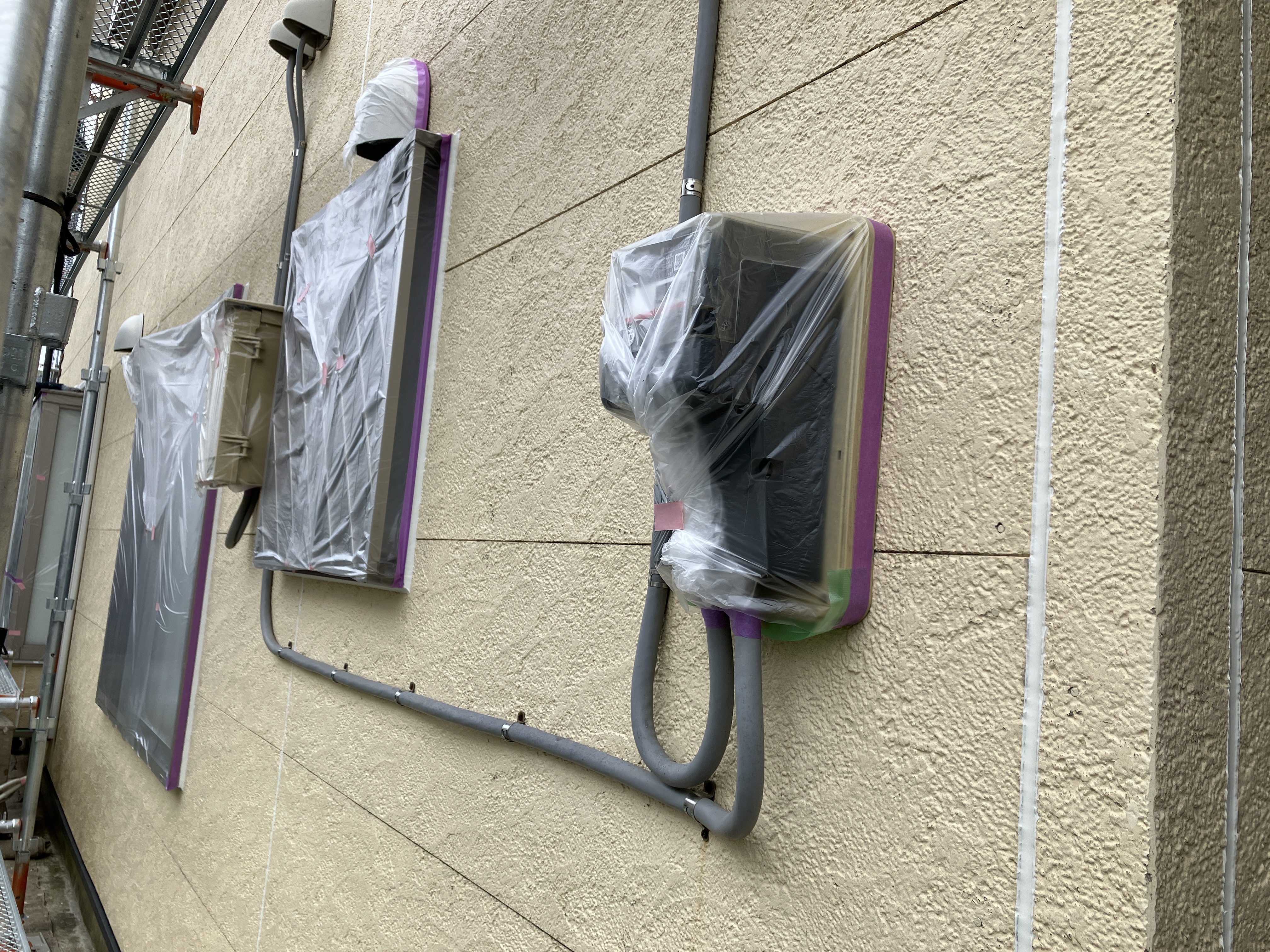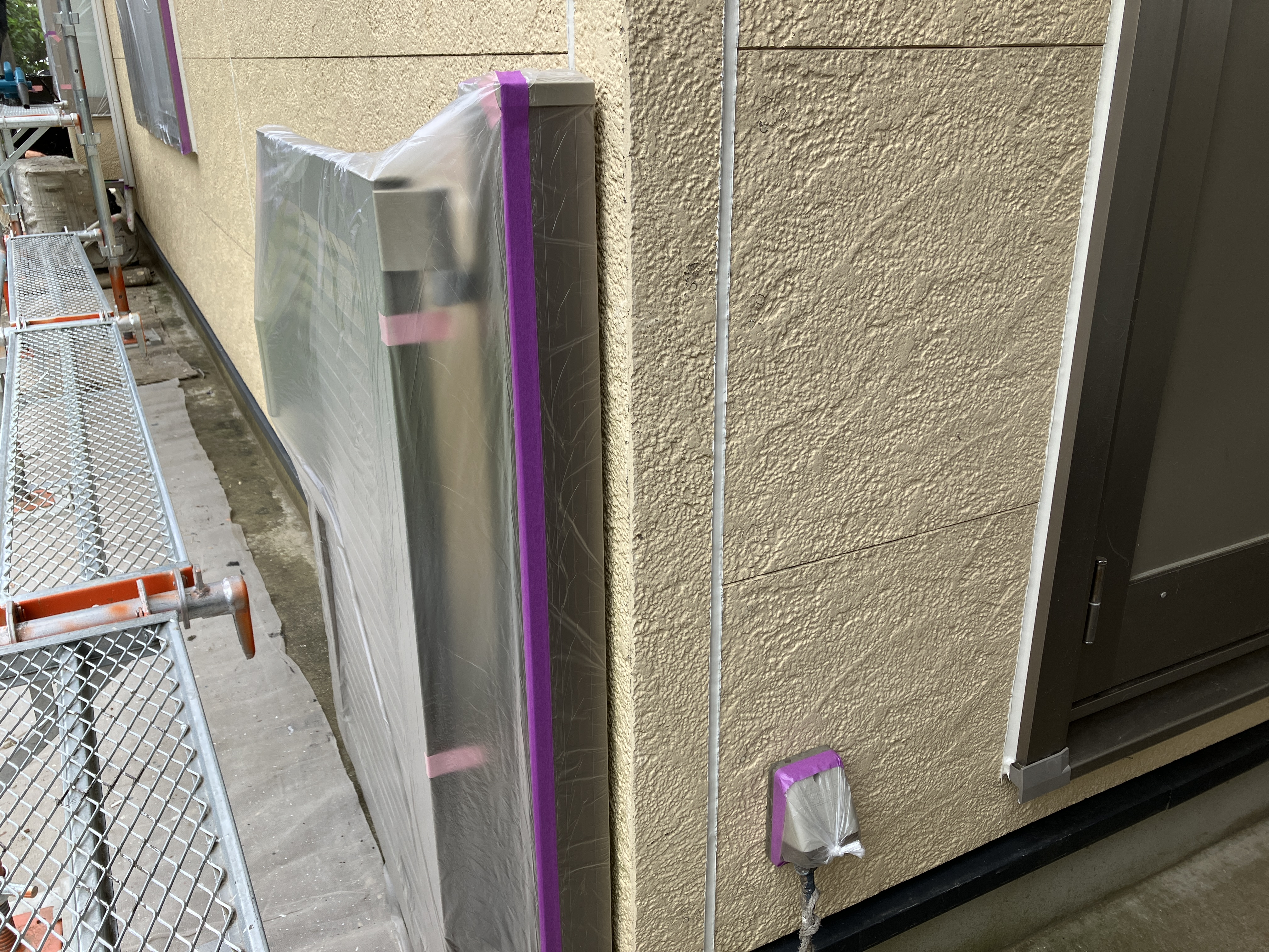 塗装する際に必ず行うのが養生というものです。塗装しないところを覆い、塗料が付着しないようにしております。
