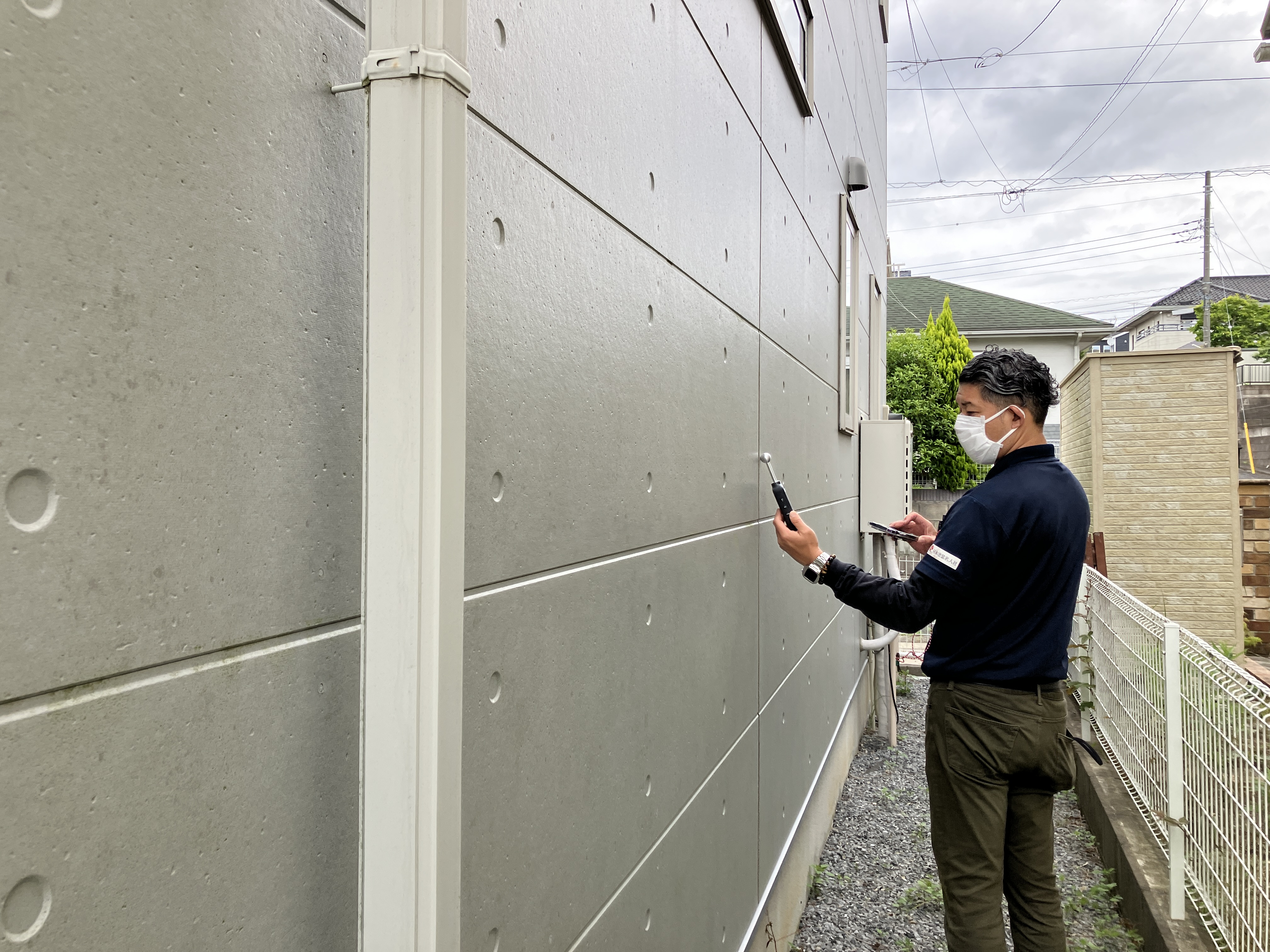窓などの開口部の実測、コーキングの長さ、現状の外壁建材の種類や状態をしっかりとチェックしていきます。