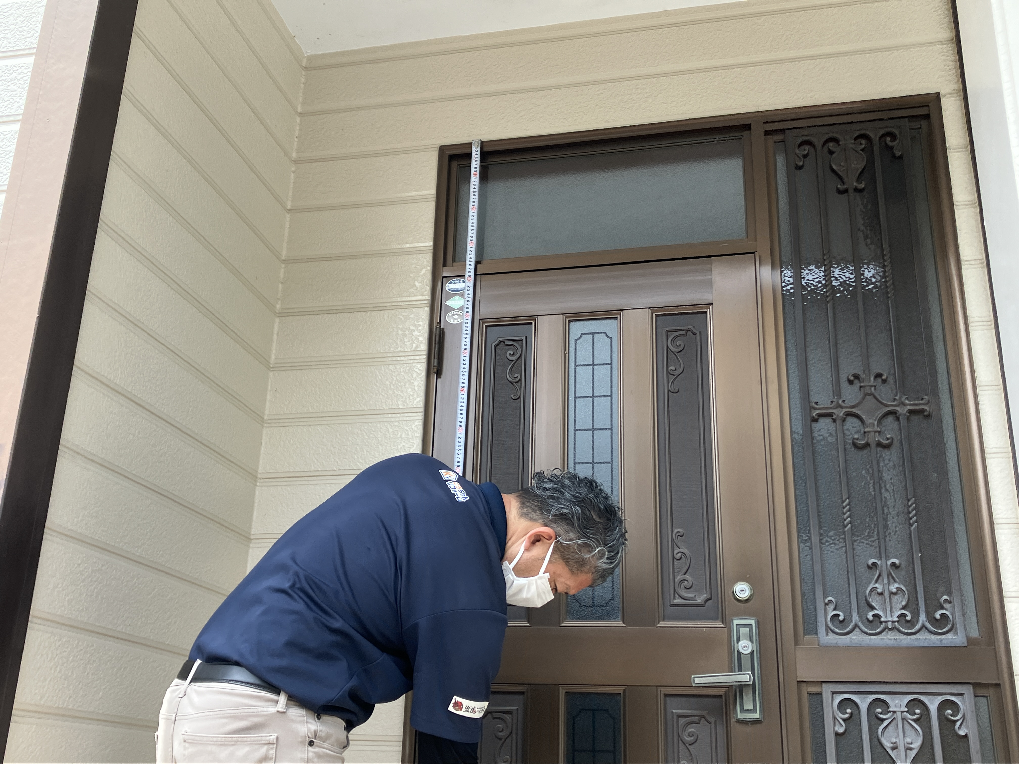 玄関ドアも計測中。こちら簡単にやっているようで、技ありなんです。