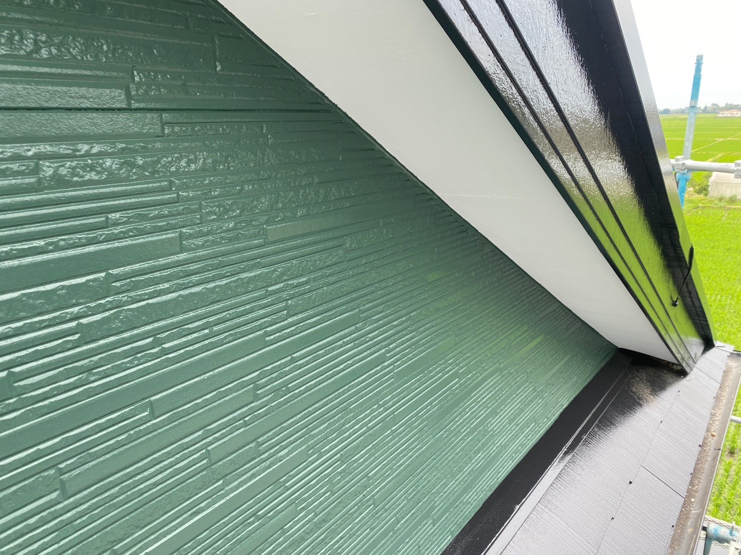 こちらのお住まいは屋根塗装も行いました。屋根と外壁の際の部分も丁寧に施工されていて美しい仕上がりです。