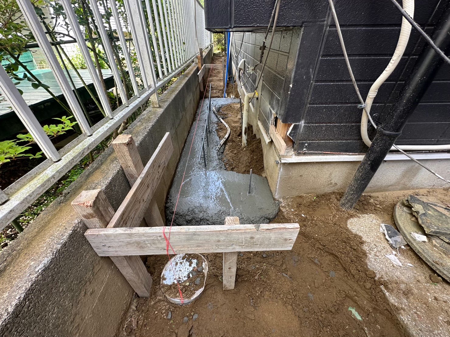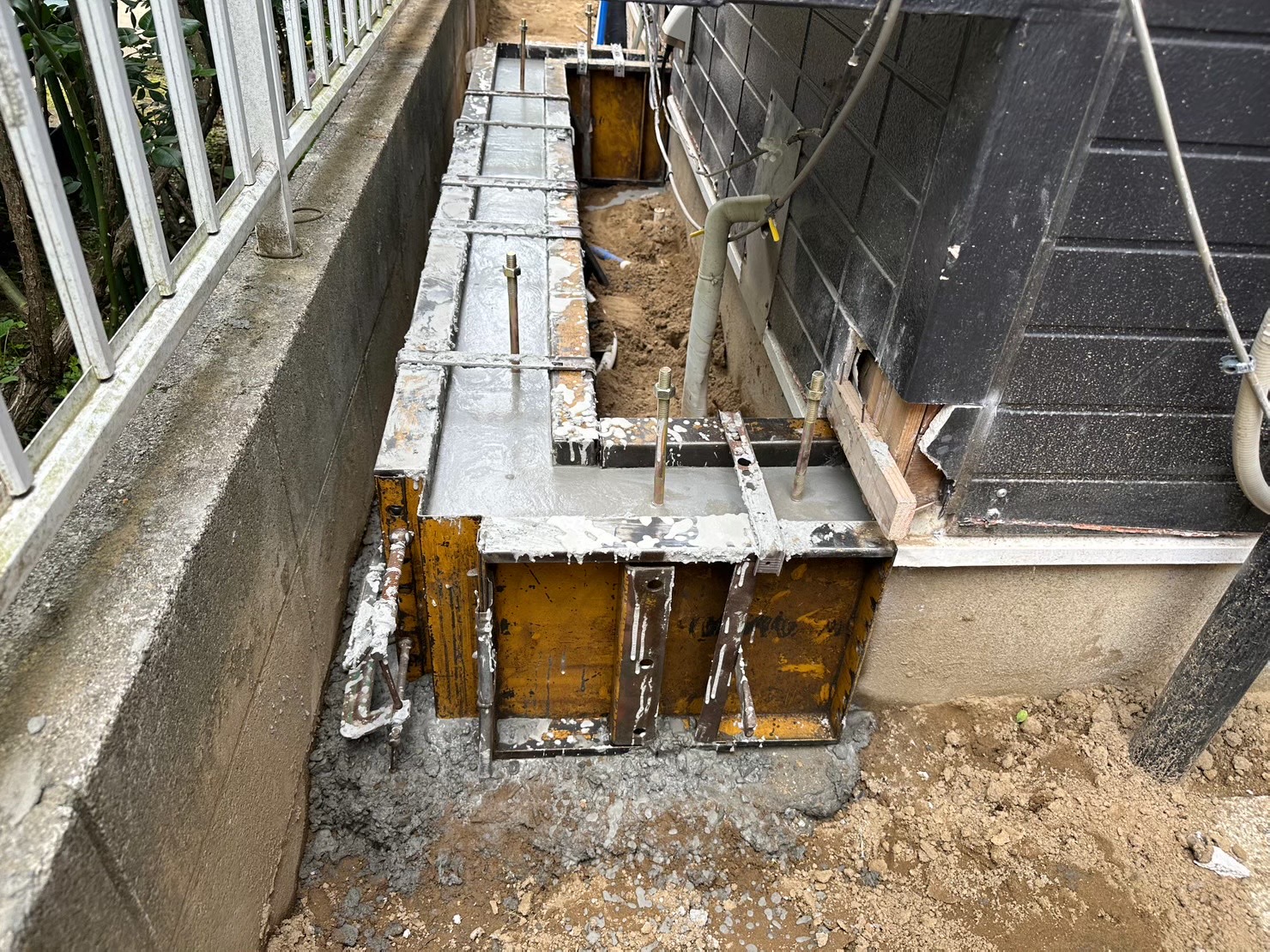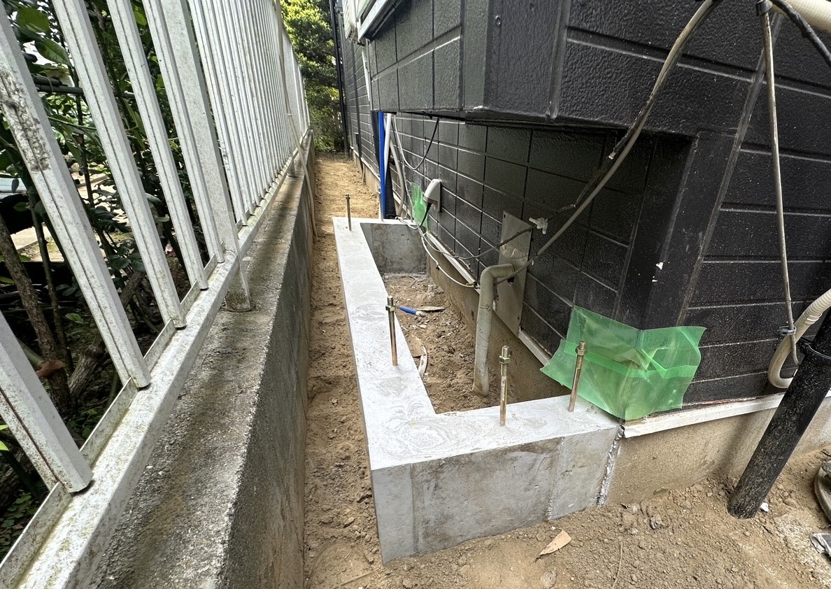 新たに基礎となる部分です。浴室を広げるために、これから外壁を解体し新たな壁を造作していきます。