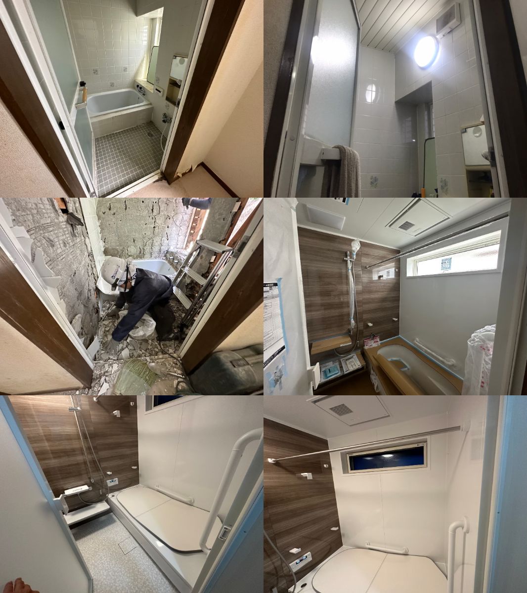 今回のリフォームでは、大きく2箇所について増築いただきました。まず、お風呂のタイルがボロボロで広さも0.75坪と狭かったので、外側へ増築して1坪にしてもらいました。