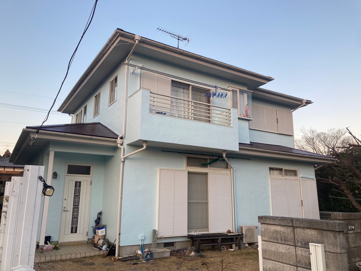 そこで、15年前のこうちゃんペイントさんによる施工では、外壁を昔から憧れていた水色で塗ってもらいました。