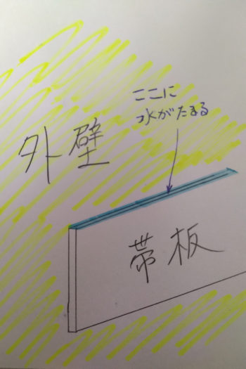 さて、帯板のトラブルはよくあるものだということではありますが、こうちゃんに言わせれば、しっかり施工をしていれば、そこまで弱いパーツでもないのだそうです。 施工のポイントは、帯板の上の水が溜まりやすい部分にしっかりとゴム状の素材でコーキング(防水処理)をすること。そうすれば外壁本体との間に水が入り込んだりすることがなく、長持ちするんですよ。