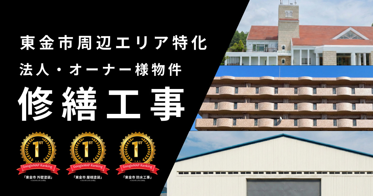 HOME法人・オーナー様修繕工事 東金市周辺エリアの法人・オーナー様へ マンション・ビル・工場・倉庫・店舗・病院・ゴルフ場等の 塗装工事・防水工事・修繕工事はこうちゃんペイントにお任せください! まずは、無料診断で建物の劣化状況を確認しませんか? メール相談はこちら 無料見積はこちら 対応エリア 東金市 山武市 大網白里市 茂原市 八街市 千葉市 長生郡 山武郡 東金市周辺エリアの施工実績 【福祉施設】ワーナーホーム様|スロープ新設工事 【福祉施設】ワーナーホーム様|屋上防水工事 【店舗】京葉銀行様|内部塗装リフォーム工事 【工場】伊佐野製作所様|屋根雨漏り修繕/貯水タンク塗装 【公共】東金警察署 砂古瀬派出所様|屋根棟瓦交換工事 【公共】山武中央土地改良区様|外壁塗装・雨漏り修繕工事 【マンション】八街市マンション|外壁塗装 【マンション】八街市マンション|防水工事 【福祉施設】内部塗装 【事務所】千葉市事務所兼倉庫|内部工事・塗装 【公共】東金中学校様|外壁塗装 【公共】成東小学校様|塗装工事 こんな症状ありませんか? 次のような症状は建物の老朽化が進んでいる証拠。美観を損ねるだけでなく、漏水や剥落の危険性もあるため、早めの修繕が必要です! 外壁のひび割れ シーリングのひび割れ・剥離 屋上防水層(シート)の膨れ・破損 鉄部のサビ タイルのひび割れ・剥がれ 外壁の汚れ 放置しておくことで様々なリスクが… ゲリラ豪雨・台風で、全館雨漏り&長期休業に… 経年劣化した外壁・タイルが落下し、人身事故・損害賠償に… 外観の古さが目立ち、空室増・テナント離れ・資産価値の下落に… そうならないために、未然の対策・備えが必要です! 【東金・山武地域に特化した】塗装・防水のプロが建物まるごと診断いたします 一級技能士による丁寧な施工こうちゃんペイントは一級塗装技能士、二級鋼橋塗装技能士、外装劣化診断士の 有資格者によるこだわりの自社施工。 知識・技術・豊富な経験を持った外装のプロが丁寧な施工をいたします。 映像を使用した正確な診断こうちゃんペイントでは診断士が屋根の上まで高所カメラで診断。 外壁や屋根を撮影した画像や映像をその場で一緒に見ながら、状況をしっかりとご確認いただくことができるので安心です。 明確な見積もりと寄り添ったプランこうちゃんペイントの見積もりはしっかりとした診断を行った上で、リフォーム図面で算出した正確な塗装面積に基づき、どこの箇所を、どんな塗料で、どのぐらい塗装するかひとつひとつ明確に記載してあります。 お見積もりには塗布量、塗布缶数、金額を明確に記載し、一級塗装技能士である代表が丁寧にご説明いたします。 今やることで、このようなメリットも期待できます メリット①:遮熱塗料で電気代削減! メリット②:火災保険が適用できる可能性! メリット③:補助金が適用できる可能性! 施工後も安心のトリプル保証 保証①:自社保証 施工不良による塗膜の剥がれ・急激な変色・シーリングからの漏水などが万が一起きた場合に、保証を約束するものです。屋根・外壁塗装では最長10年の保証を設けています。施工に自信があるからこそ、どのお客様にも施工保証をお付けしています。 ゲリラ豪雨・台風で、全館雨漏り&長期休業に… 保証②:メーカー保証 塗料によっては、工事保証とは別に、メーカー保証を受け付けられるものがございます。塗料メーカーが、塗料の耐久性に対してその品質を保証するものです。 経年劣化した外壁・タイルが落下し、人身事故・損害賠償に… 保証③:第三者機関の保証 弊社では、お客様の住まいを徹底的にお守りするために、第三者機関による保証もお付けしております。経営内容などを厳格に審査された後、承認を受けた企業だけが登録できる、「住宅保証機構」に登録をしています。仮に、リフォームを頼んだ会社が保証期間中に倒産した場合でも、施工店に代わって工事保証を引き続き受けることのできる保証です。 外観の古さが目立ち、空室増・テナント離れ・資産価値の下落に… お役立ちコンテンツ 工場や倉庫の建物管理・保守メンテナンスは重要!保守と保全の違いや放置が危険な理由も解説! 詳しくはこちら マンションやアパートの水漏れ・水濡れの修繕は火災保険の対象?適用条件や知っておくべきポイントも解説! 詳しくはこちら 公共工事を行えるのはどんな企業?民間工事との違いや工事受注までの流れを解説! 詳しくはこちら もっと見る お見積もりは無料です。実施するかどうかお見積りを見てからの判断をいただければと思います