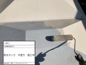 貯水タンクも塗膜保護のため塗装を施していきます。