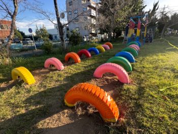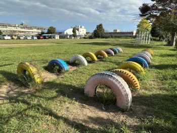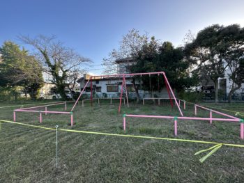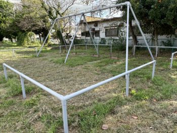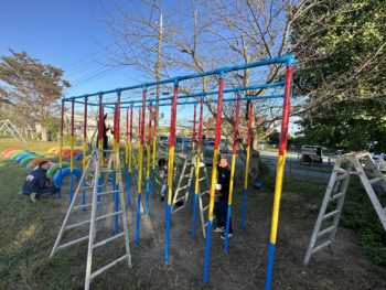 囲いもしっかり下塗りが終わったブランコです。子供たちの希望の色が乗るとどんなブランコになるか楽しみです