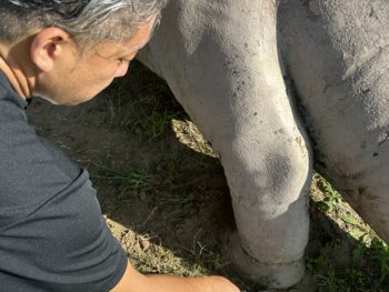 大変身を遂げようとする築山の恐竜。どんな色になるかお楽しみに!