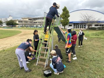 | お客様のご要望 | 創立50周年記念の大切な節目の時、社長、【こうちゃん】の母校である東金市の鴇嶺小学校で、6年間たくさんの思い出が詰まった遊具の塗装を一緒に行わせていただきました。卒業生達の真剣な眼差し、楽しそうな笑顔、クラスで決めた想い思いの色に塗装された遊具は息を吹き返したような輝きを私達に見せてくれました。たくさんの子ども達が遊んできた遊具、皆一丸となって塗装しぴかぴかになった遊具で遊ぶ子供たちの姿がとても楽しみです。 6年間のたくさんの思い出の一つとして、この体験を覚えていてくれたら何よりです。また、これからの未来を担う子供たちへ、塗装の楽しさが少しでも伝わってくれたら嬉しいです。 大切な下地処理を先生方やPTAの皆さまに一生懸命お手伝い頂いたおかげで、長持ちにもつながり仕上がりの耀きが一段と増しています。お忙しい中、お手伝い頂き本当にありがとうございました。塗装でできるお手伝い、何かできる事がありましたらいつでもお声がけください。今後も人の想いを大切に、こうちゃんペイントは活動して参ります。 |