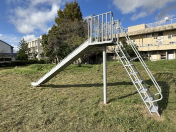 最後の仕上げを施し・・・眩いほど丁寧に塗られた滑り台です