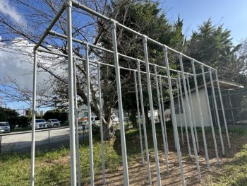 ケレン作業、下塗りと、一番手が入った登り棒、色分けも綺麗に仕上がり渾身の力作ですね