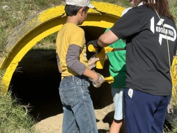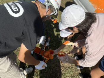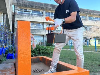 下地処理と子供たちが塗りやすいように草処理もおこないます
