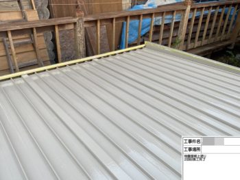 物置屋根上塗り1回目施工中